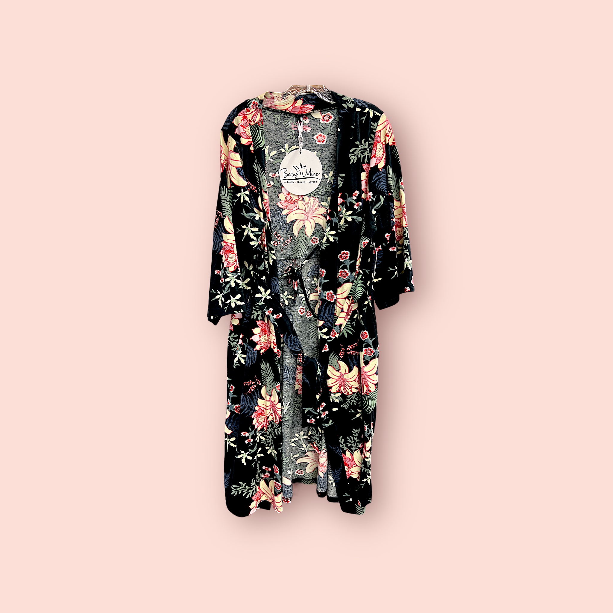 Bata de Terciopelo Floral de Manga Larga para Maternidad – Comodidad y Elegancia para Cada Etapa