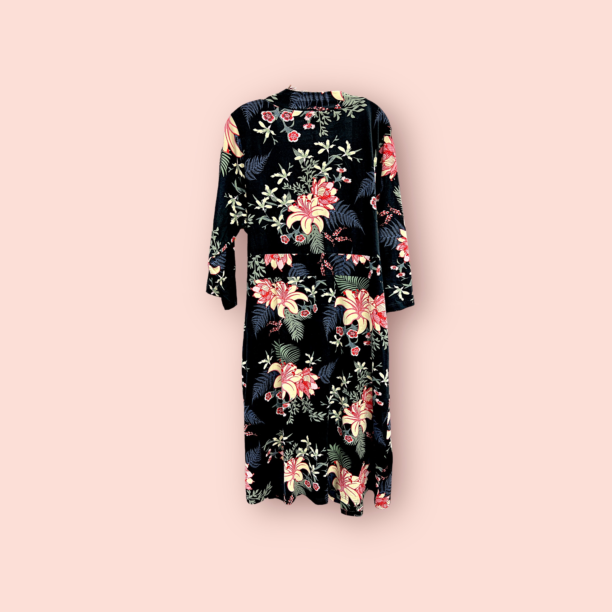 Nuestra bata de terciopelo floral presenta un diseño vibrante con un patrón de flores sobre un fondo negro, que añade un toque de lujo y sofisticación. Las mangas largas y el cinturón ajustable aseguran un ajuste perfecto y personalizado, proporcionando comodidad durante toda la noche. El terciopelo suave y lujoso garantiza una sensación agradable al contacto con la piel.