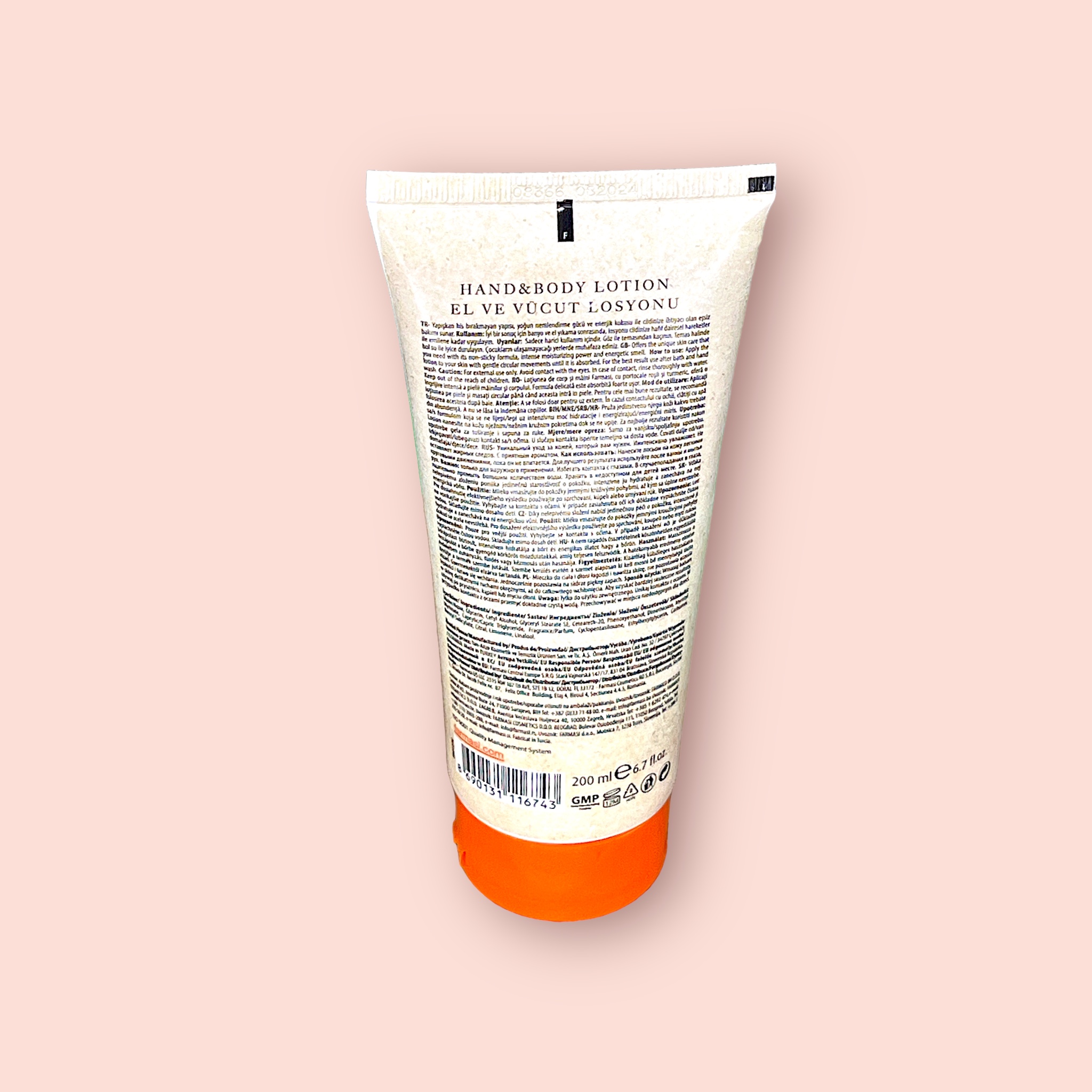 Disfruta de la refrescante combinación de naranja sanguina y cúrcuma con esta loción para manos y cuerpo. Su fórmula única hidrata profundamente la piel, dejándola suave y radiante. Perfecta para uso diario, esta loción nutre y revitaliza tu piel, proporcionándote una sensación de frescura y energía durante todo el día.